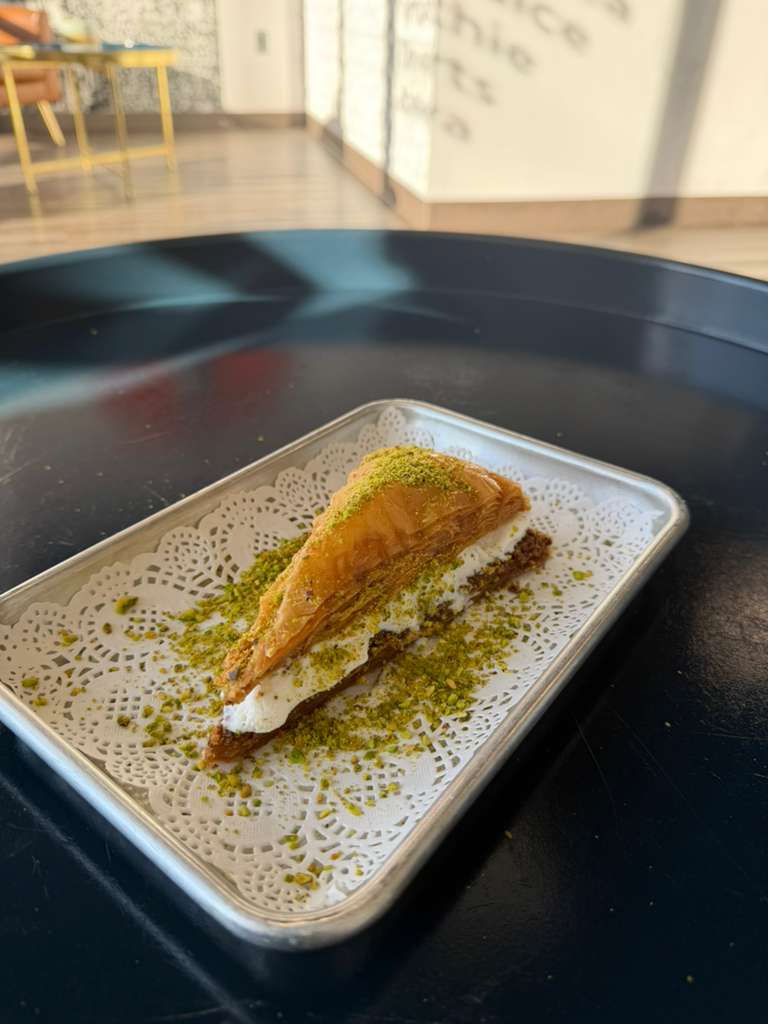 Dubai Chocolate's distinctive pistachio blend fused with Turkish Baklava – a modern take on a legendary dessert.